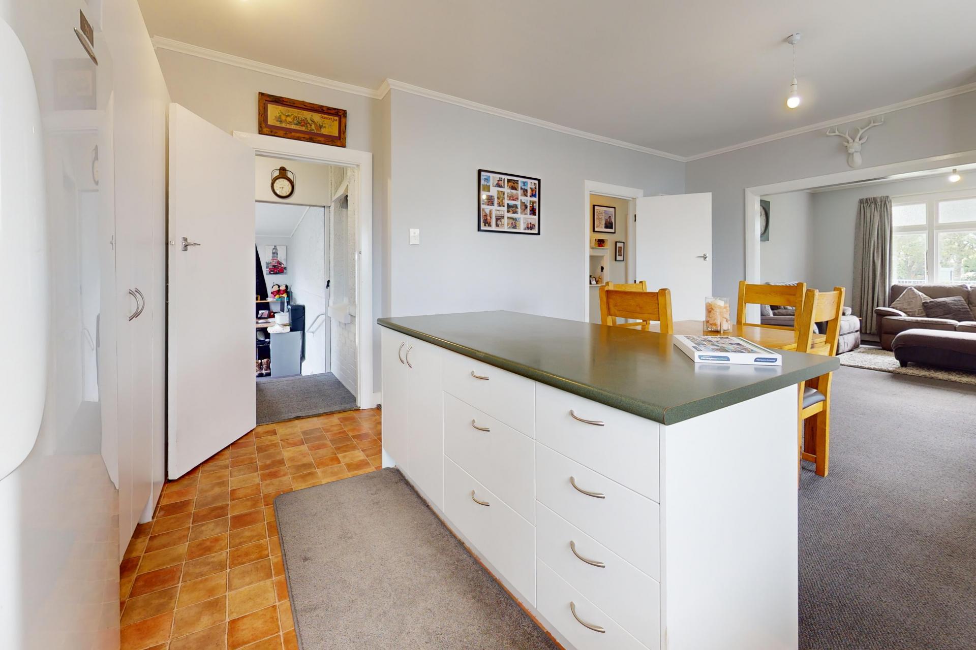 Over the past 12 months, the property has been thoughtfully refreshed with new interior paint throughout and new lino to the bathroom and separate toilet, giving the home a clean, modern feel while retaining its original character. The kitchen has been updated with newly painted cabinetry and new handles, and includes an electric stove, range hood, and new dishwasher. The laundry is neatly tucked away within a cupboard in the kitchen, maximising space and functionality.