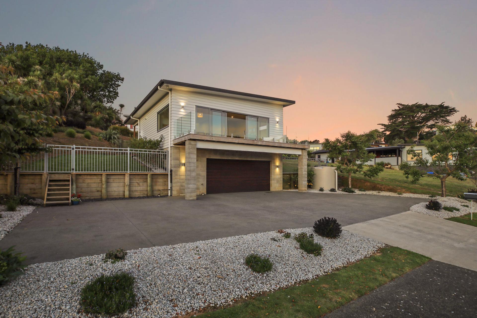 Set in a relaxed quiet location overlooking the Raglan harbour with Mt Karioi in the distance, this modern home feels incredibly inviting immediately.