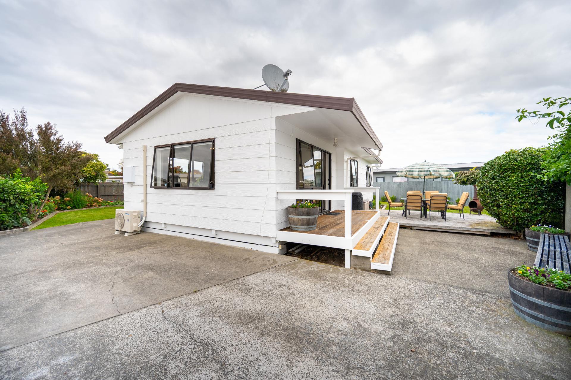 Two bedrooms include a generous master with double wardrobe, plus a clean and spacious bathroom with an open wet-floor shower. The grounds are partially fenced at the back, beautifully planted, and surprisingly spacious for this type of property. Additional bonuses include three garden sheds, easy-care landscaping, and a shared driveway that could be quickly refreshed for extra appeal.