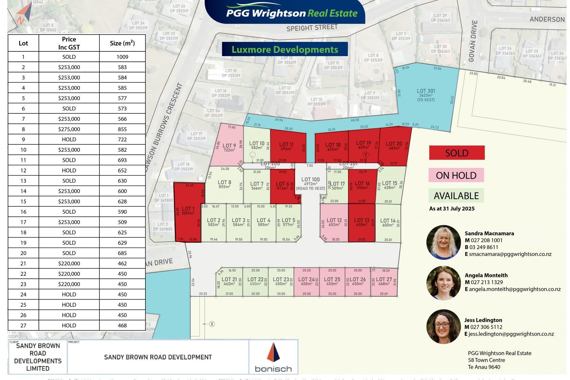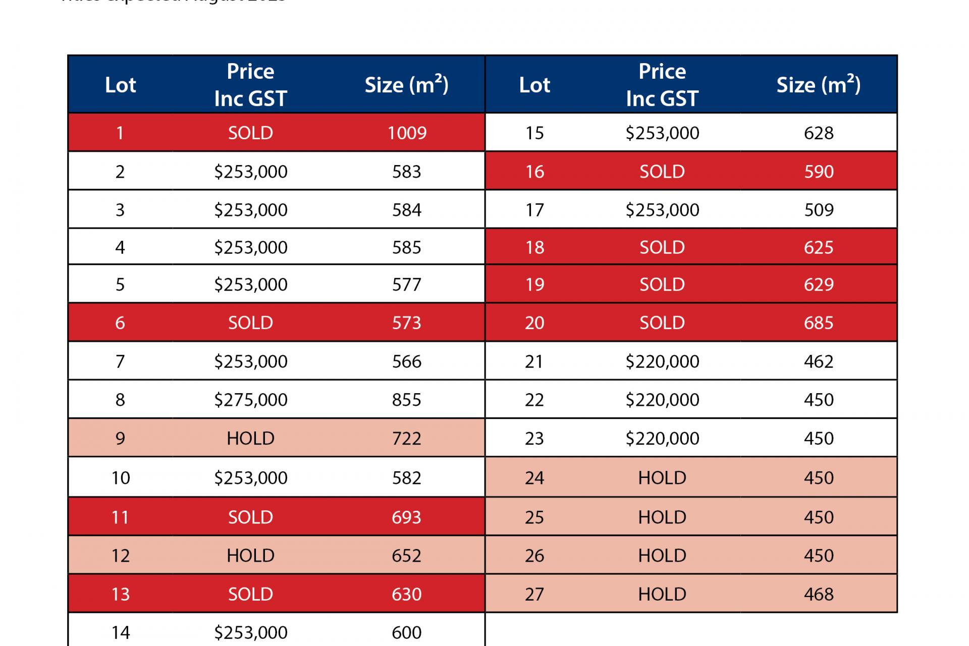 •Section sizes 450sqm - 855sqm, subject to title