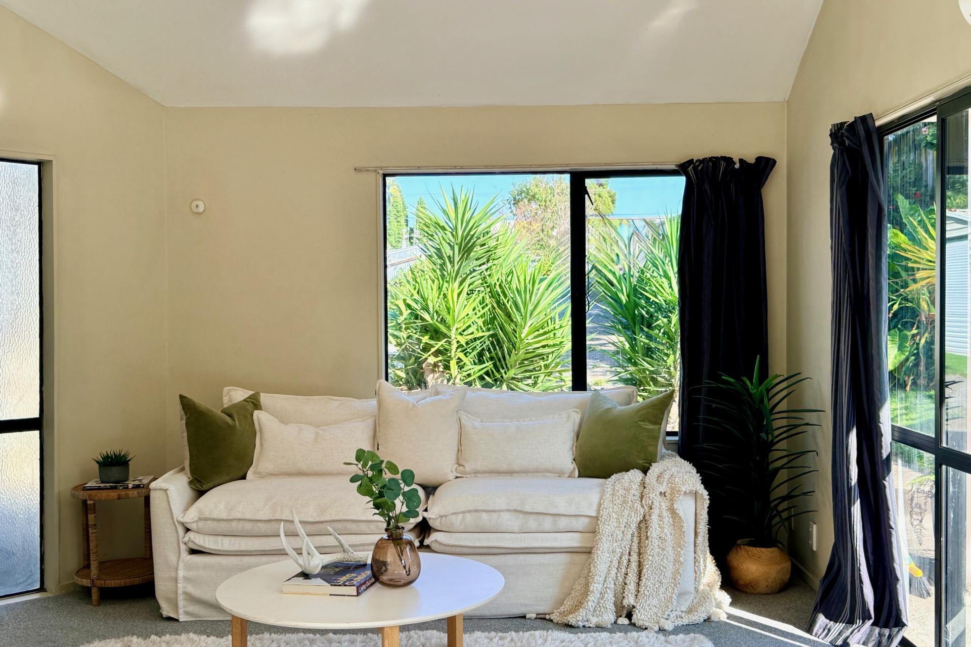 The home features a sun-filled, semi open-plan kitchen, dining and lounge. A new kitchen has just been installed, and the home has been freshly painted throughout. A heat pump in the lounge provides year-round comfort, with service areas tiled and carpet elsewhere.