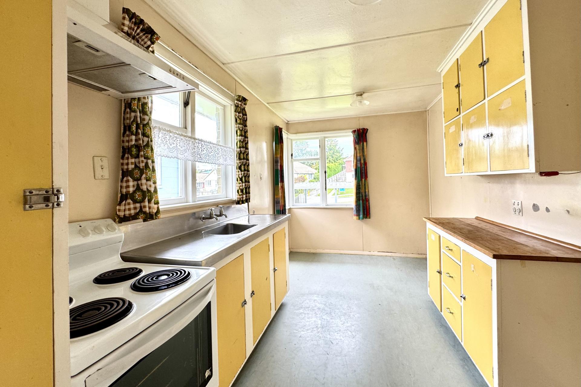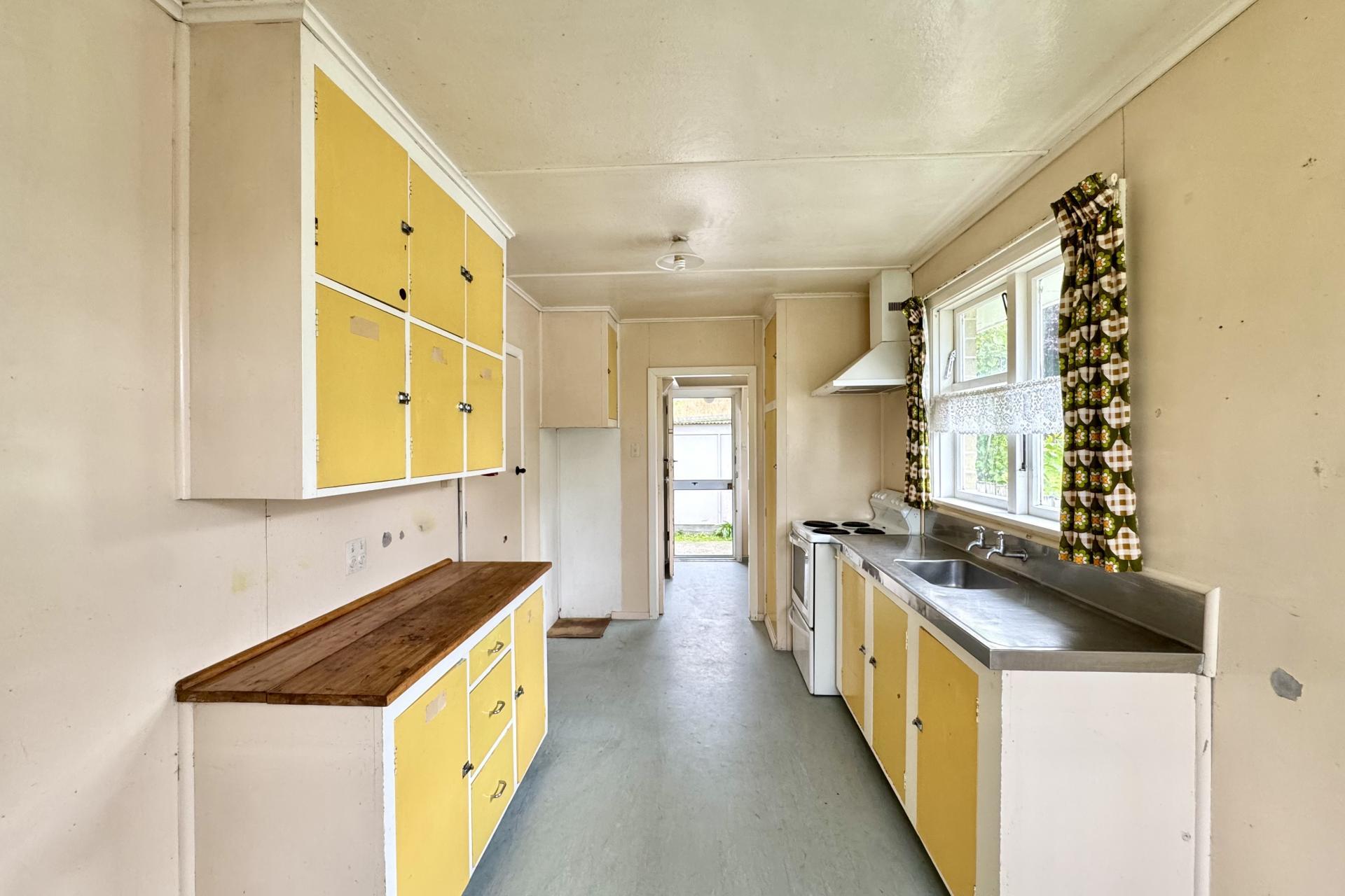 Inside, the home offers two genuine double bedrooms and a separate lounge, comfortably heated by a heat pump and of a good size. The original kitchen is light and bright with a dedicated dining nook, presenting an obvious opportunity to modernise, reconfigure, or simply refresh over time.