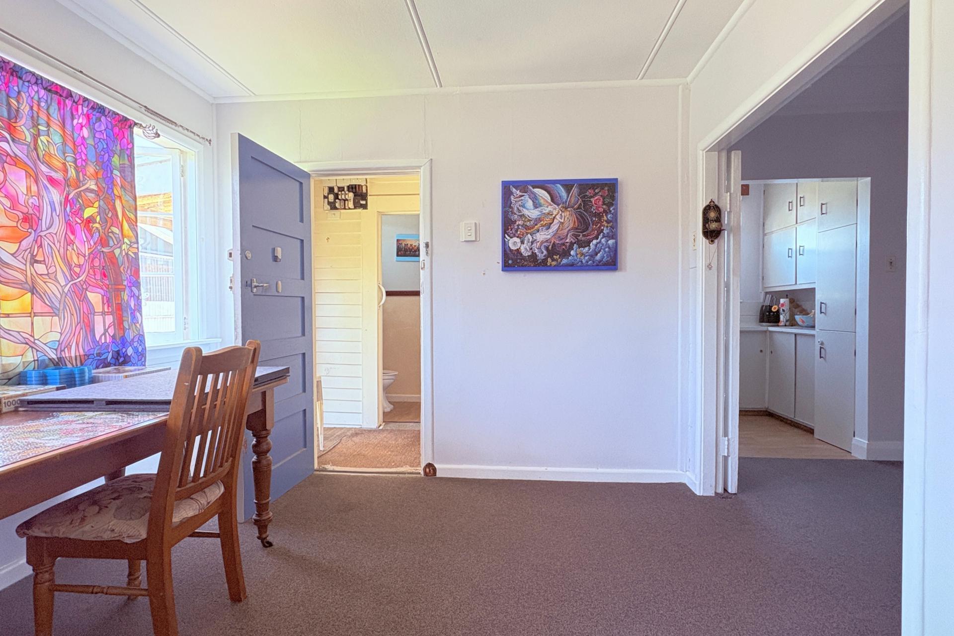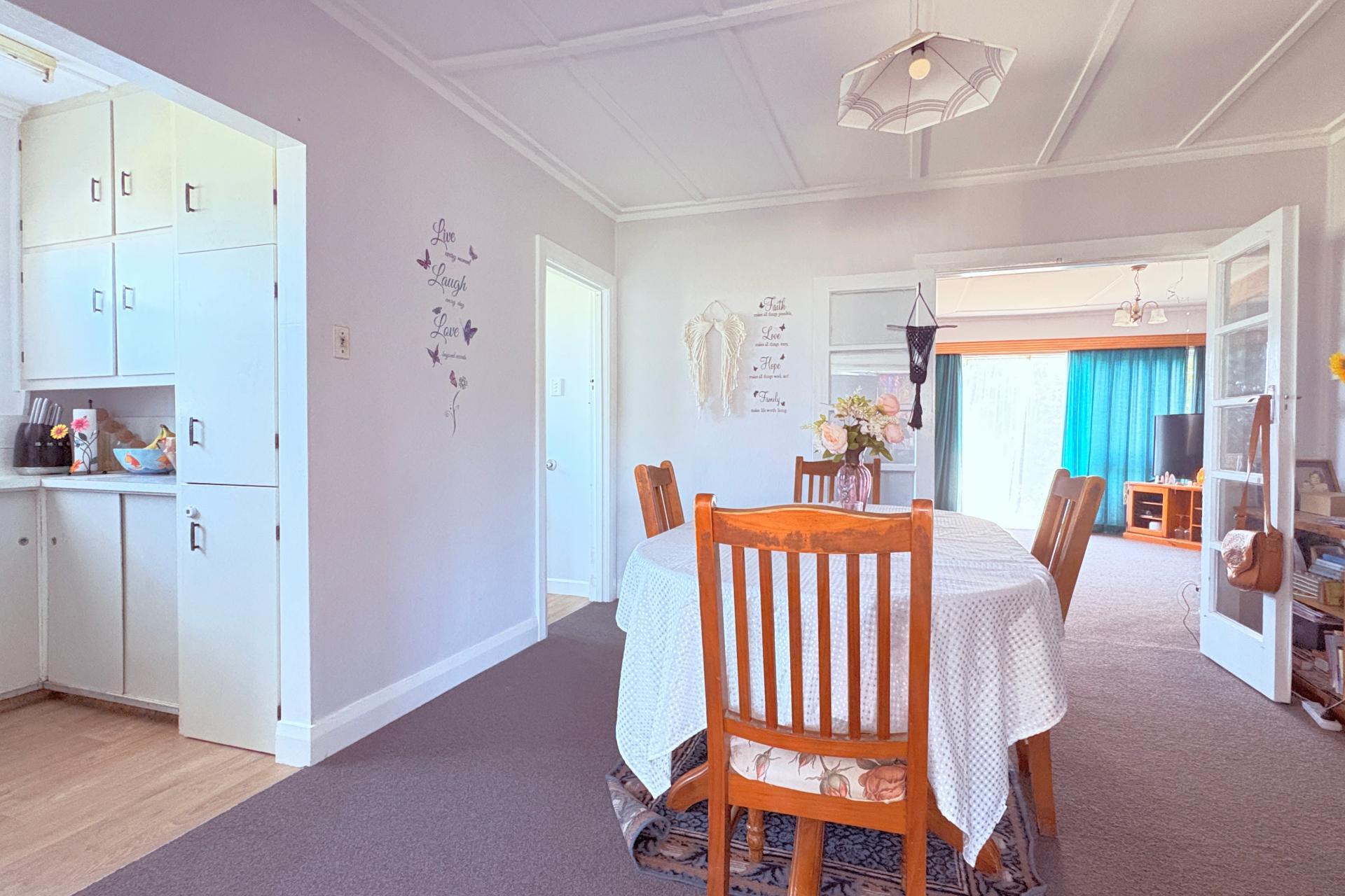 The 1950s bungalow has three living areas, currently set up as an office and craft room, at the rear entrance, through to the dining room and into the lounge room, which opens through sliding doors to the front of the home.