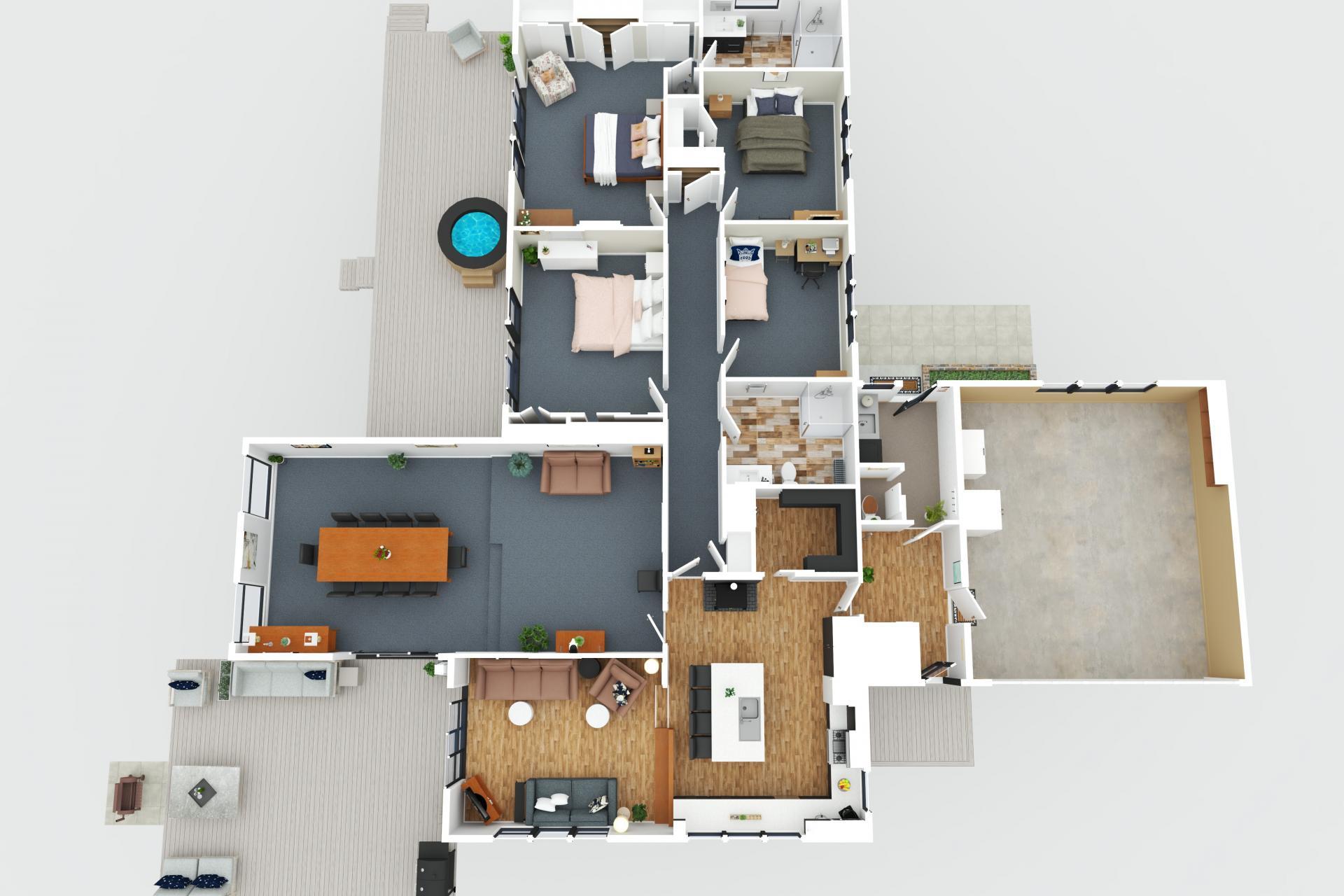 Step out onto the expansive Kwila decking, perfectly positioned to soak up the panoramic sea and farm views - ideal for morning coffee, entertaining friends, or relaxing in a hot tub under the stars, or watching the cruise ships go by.