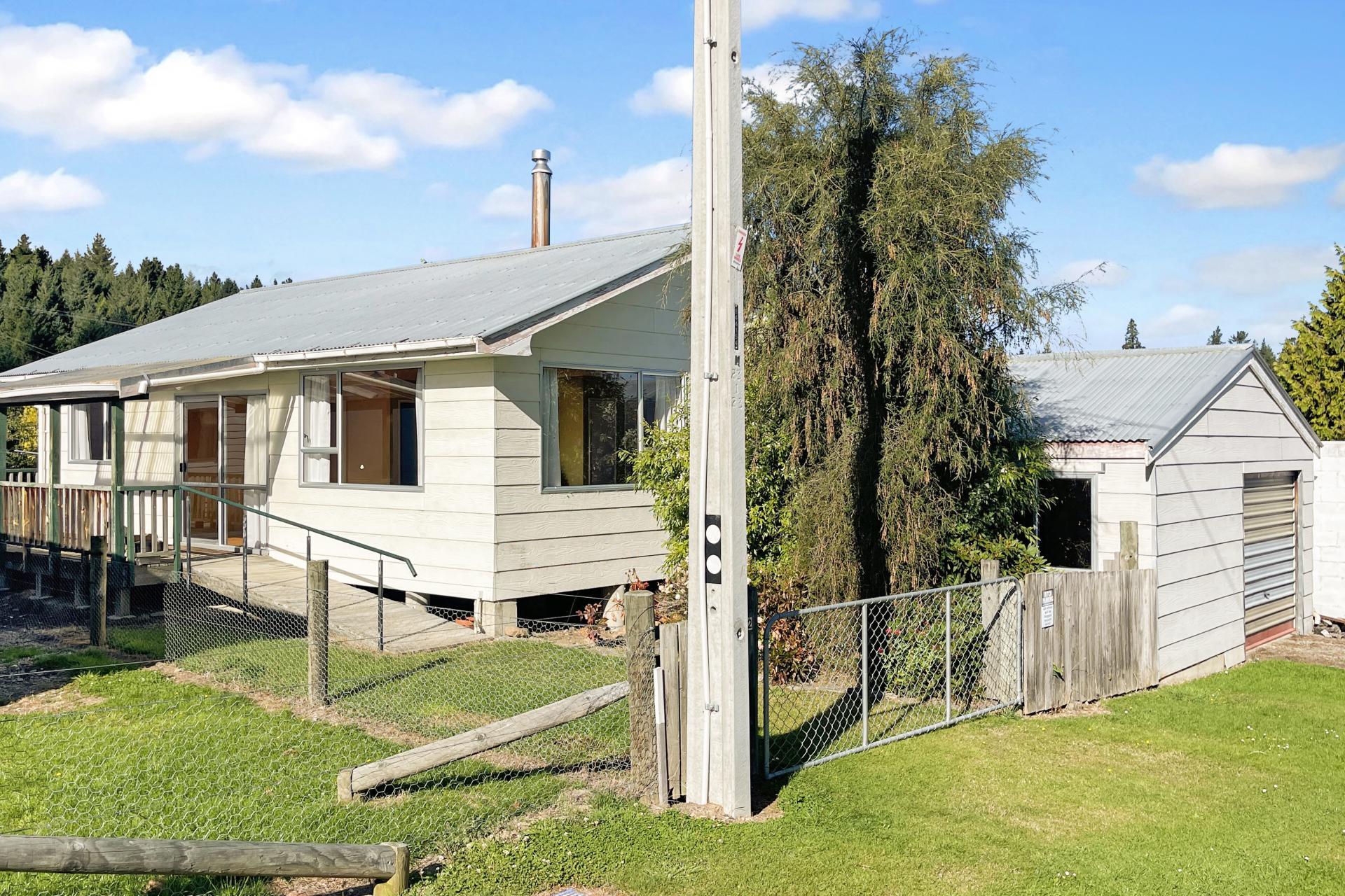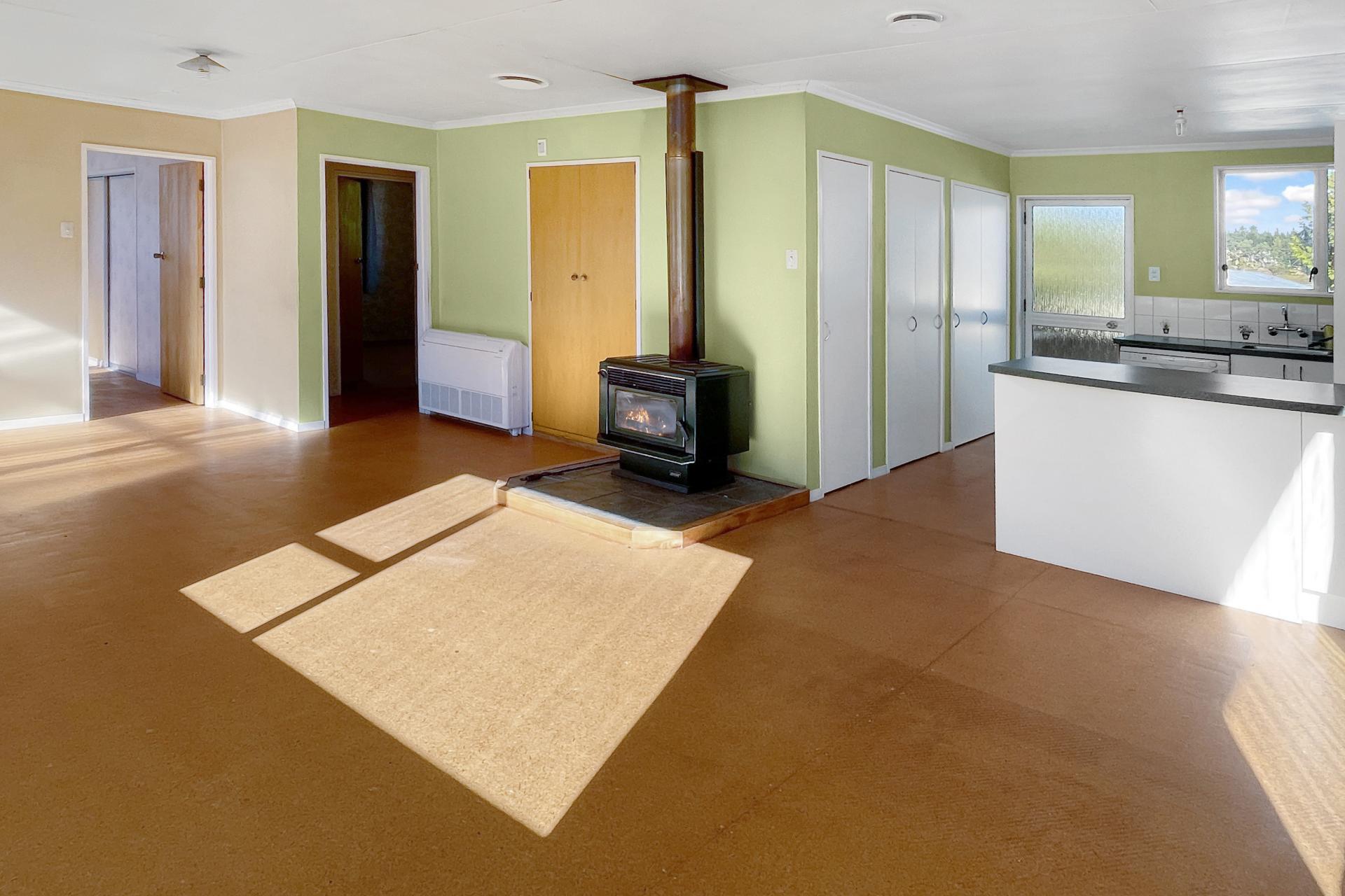 This tidy home offers comfort, space, and lifestyle in equal measure. Featuring two generous bedrooms with excellent wardrobe space, the home is designed for easy living with a spacious open-plan kitchen, dining, and living area that flows seamlessly out to an elevated, sunny, partially covered deck - perfect for relaxing or entertaining. The kitchen is well-appointed with a pantry, modern appliances, and a gas hob, while the bathroom has been modernised with a corner shower and basin. A separate toilet and dedicated laundry add to the home's practical layout. Year-round comfort is assured with both a log burner and a floor-mounted heat pump/air conditioning unit. Set on an easy-care 512m² section with dual street access, the property also includes a single garage plus an additional lined room under the same roof-ideal as a potential sleepout, hobby space, or extra storage.
