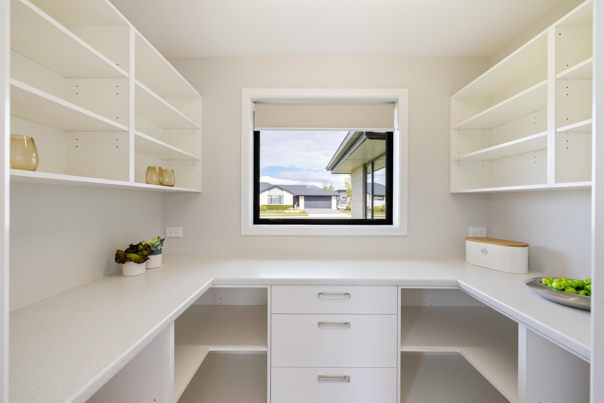 A designated laundry space leads the way to the internal access double garage with convenient attic storage accessed by a fold-down ladder, perfect for decluttering everyday spaces.