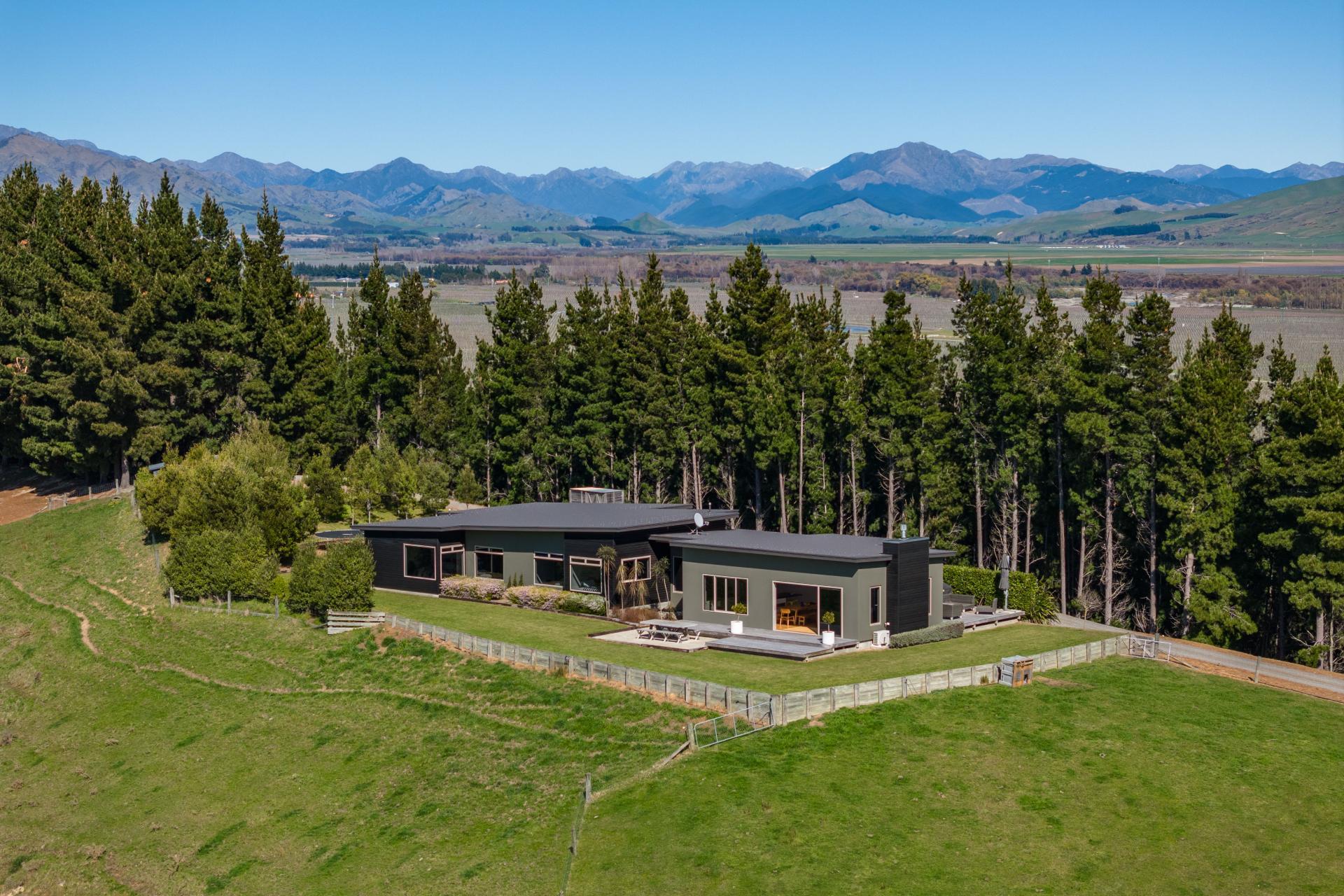 Perched on an elevated site, this expansive five-bedroom residence captures breathtaking panoramic views across Marlborough's Delta Lake Heights, the Wairau Plains, and out to the Richmond Ranges. Set on 9 hectares of land with fenced grazing paddocks, this modern lifestyle property offers the perfect blend of space, comfort, and rural charm.