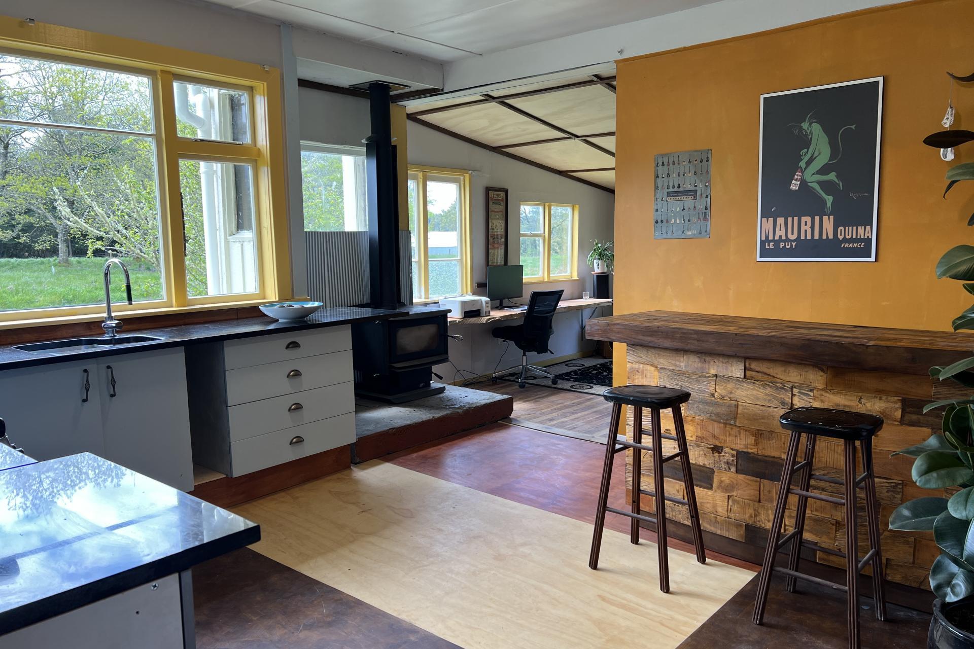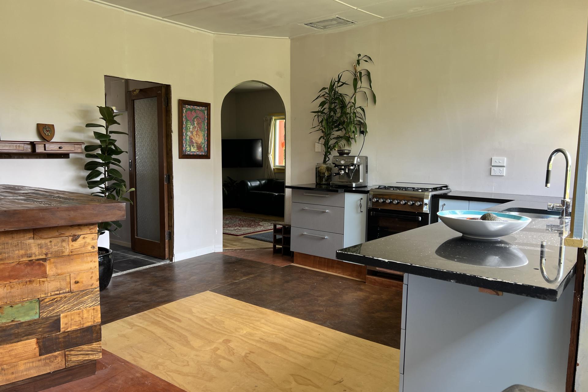 The sunny and inviting kitchen has been upgraded and is the hub of the home, with an all gas oven new multi fuel fire and free standing island bar. Walk through to the north facing living area with great views looking up parts of the Grey Valley.