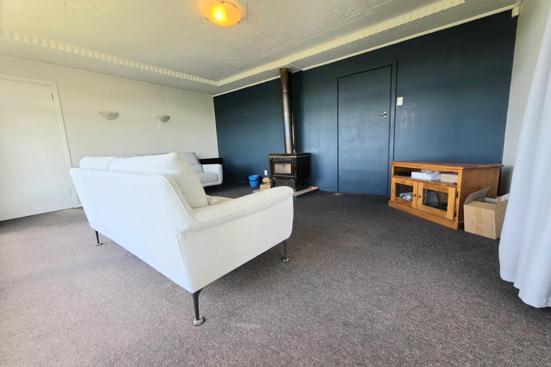 Step inside to discover three generous bedrooms, each providing comfortable accommodation and great natural light. The modern kitchen is well-equipped for effortless everyday living, flowing easily into the main living area warmed by a cosy log fire.