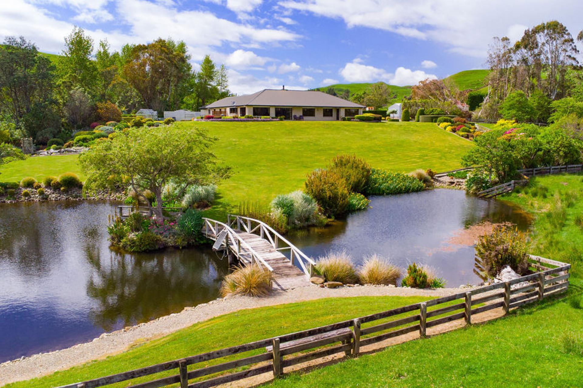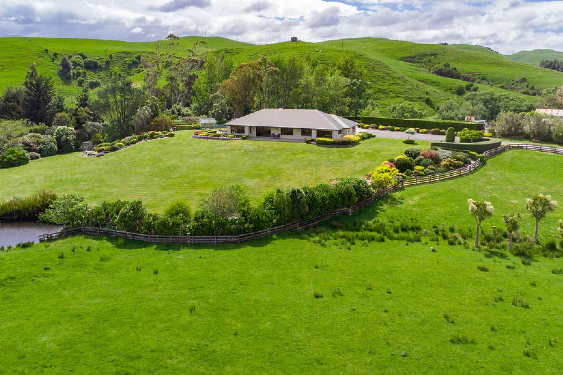At the heart of the property sits an elevated 2002 built brick home, positioned to capture natural light and sweeping rural views looking out toward the Tararua ranges and offering a truly scenic backdrop to everyday life. The home is surrounded by beautifully landscaped and thoughtfully planted gardens, creating a peaceful and private setting from the moment you arrive.
