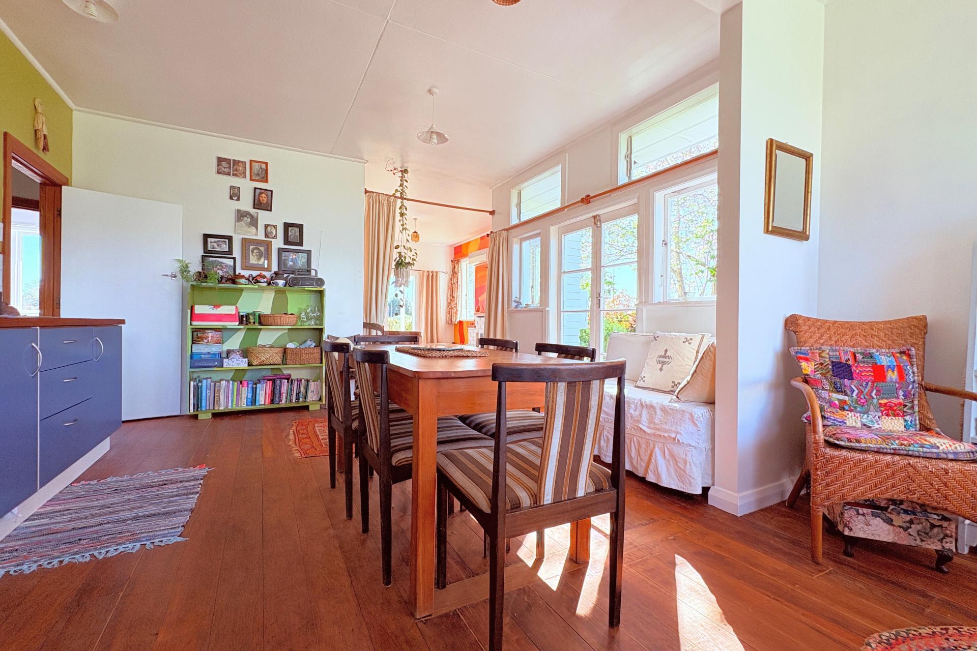 Start your day in the sunny kitchen nook, a cozy corner in the open-plan kitchen and dining area, or unwind in the living room by the fireplace or heat pump. This thoughtfully renovated three-bedroom home blends character with comfort—pops of colour, naturally oiled hardwood floors, and calming bedrooms that each enjoy their own private outlook. Morning sun graces one bedroom, while the other two bask in afternoon light. Nearly every room frames views of Standring Park, the local kura, and rolling rural hills. With the park opposite, you'll love the peaceful setting - and Wairoa Hospital is just a short stroll away.