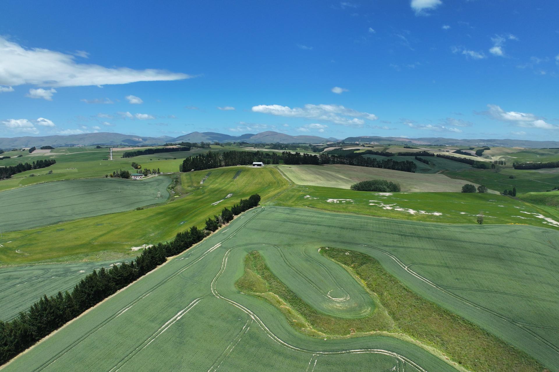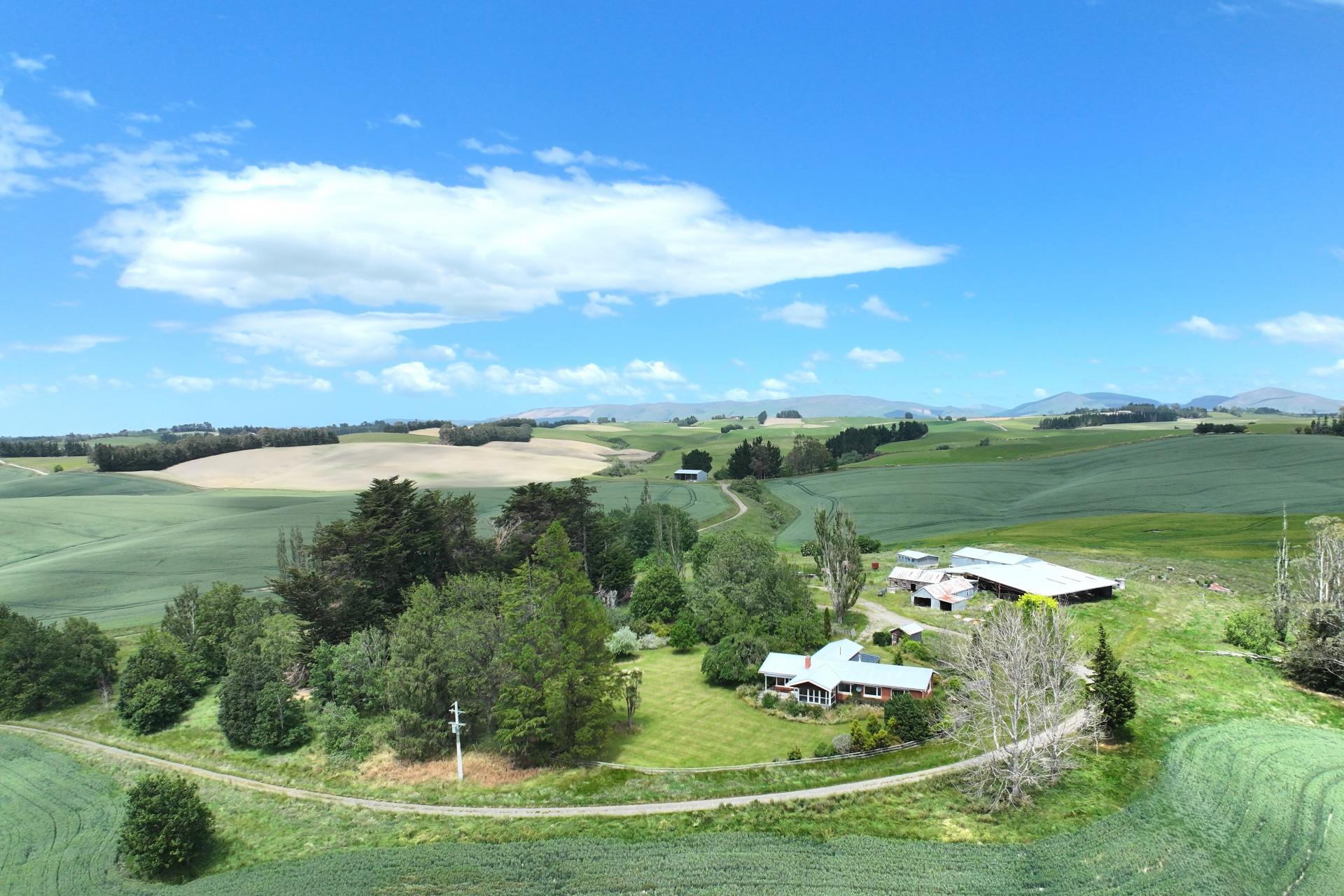 Farm improvements include an older three-stand woolshed with covered yards, four haybarns, a large fertiliser shed and set of cattle yards located inside the shed.